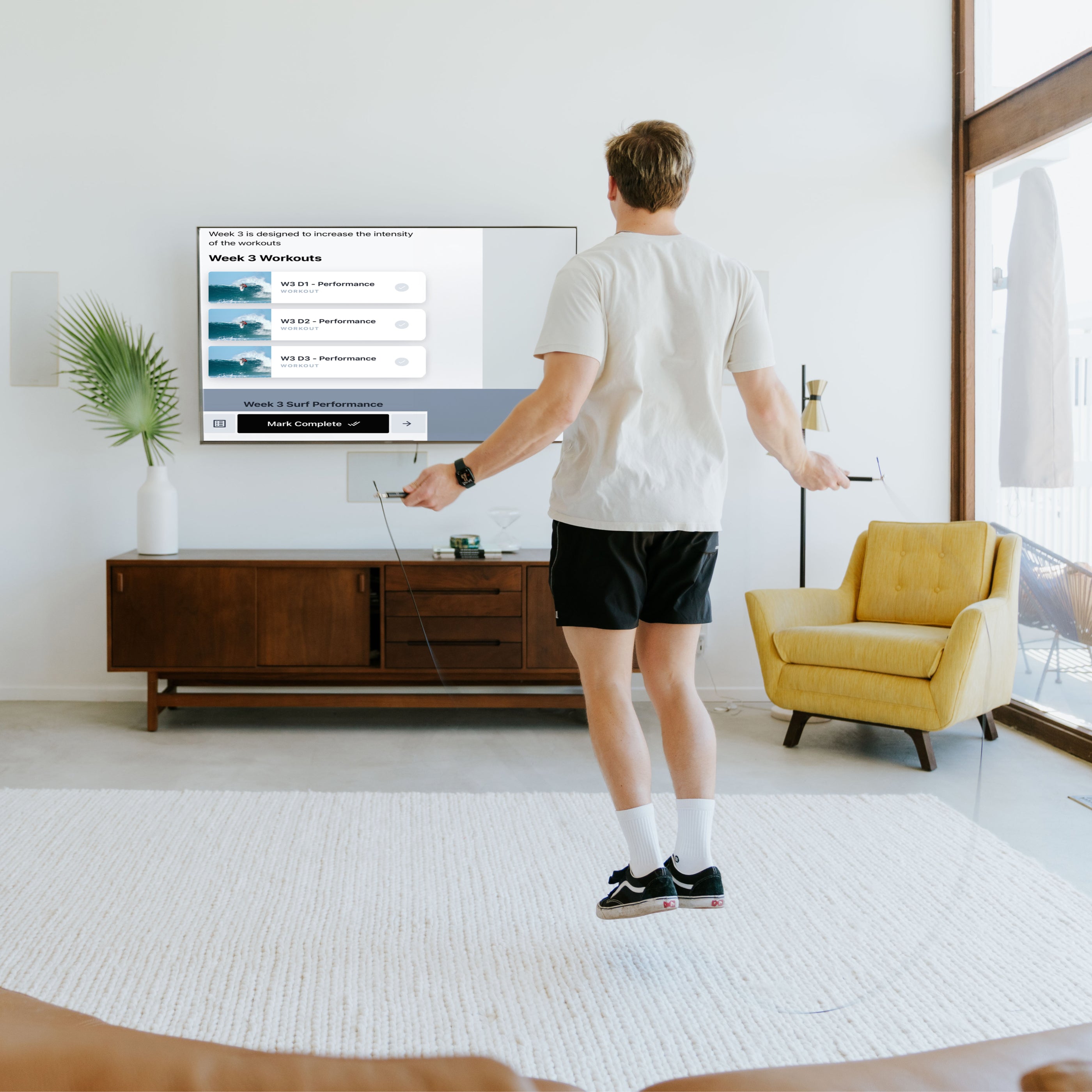 You can use the SRF Performance Kit, which includes essential items like a suspension trainer, speed rope, and resistance bands.